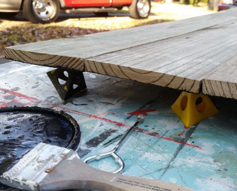 So, you don’t have reclaimed fence boards? Single fence boards at the hardware store are really inexpensive! Once they’re painted, you’ll never know the difference.