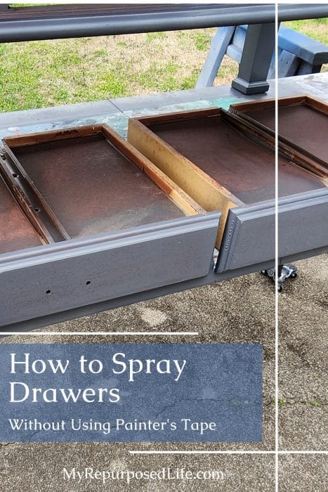 Notice how little overspray there is on the table. With the drawers upside down, there is no overspray inside. I’ve been painting drawers successfully for years using this method.