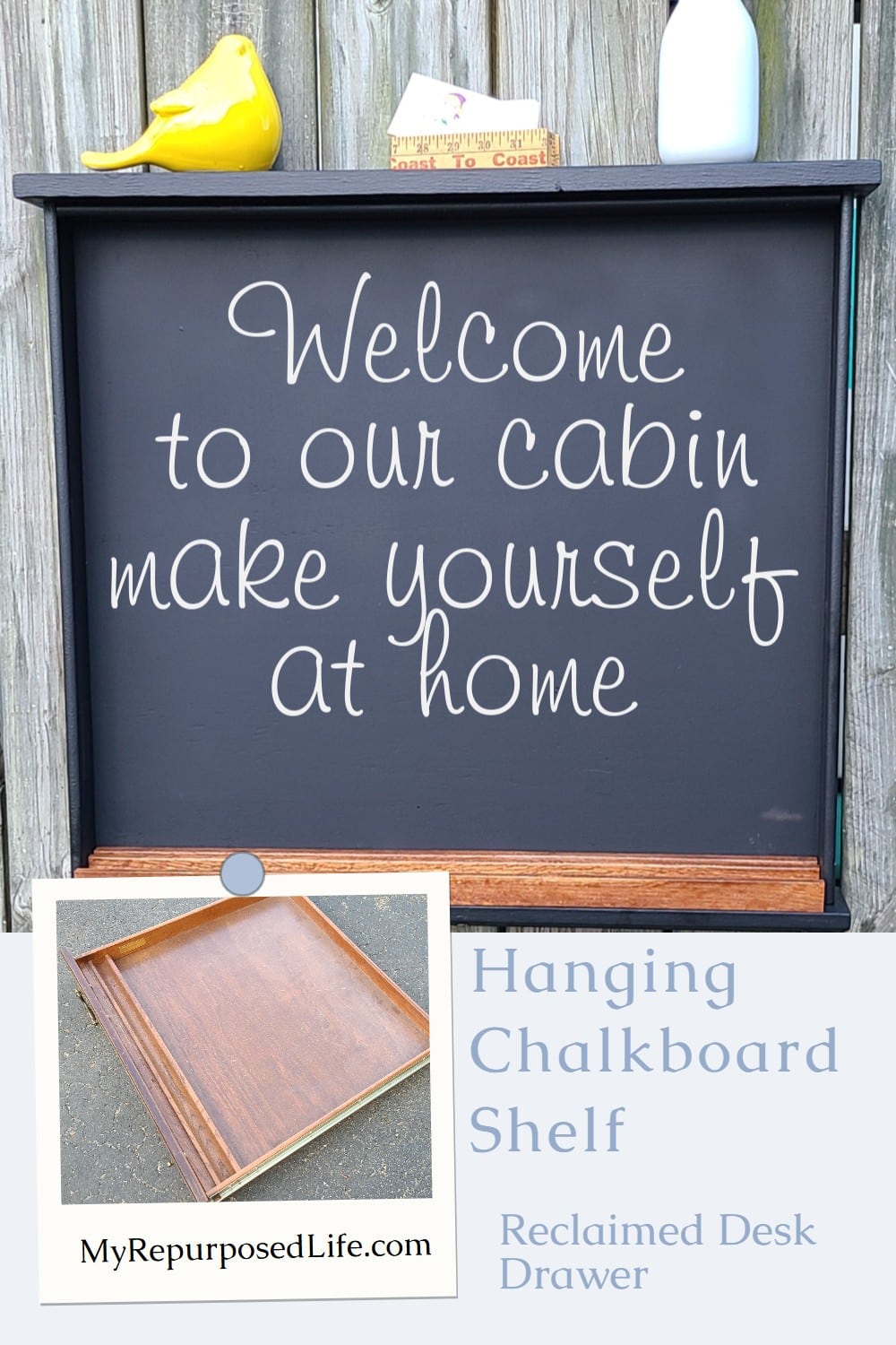 Guests love leaving messages on the Desk Drawer Chalkboard. Every time I visit the cabin, someone has left a message on it.