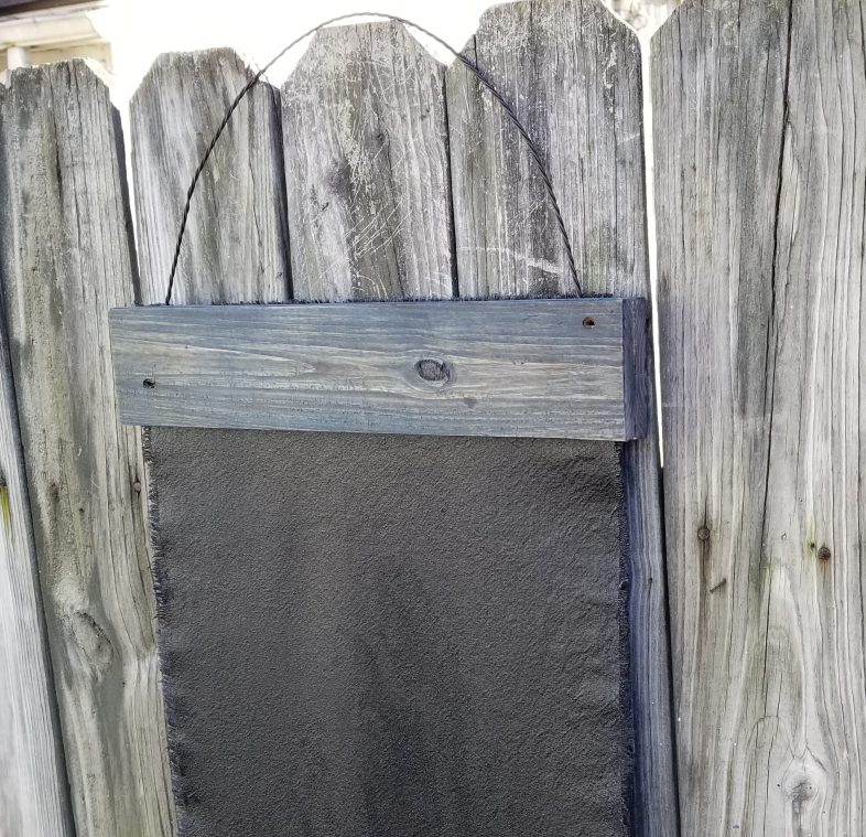 This easy drop cloth chalkboard project is quick and easy. I love how it looks with the twisted wire hanger. Did you know they have chalkboard vinyl available on Amazon. Using that would really make this project easy.