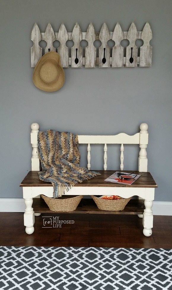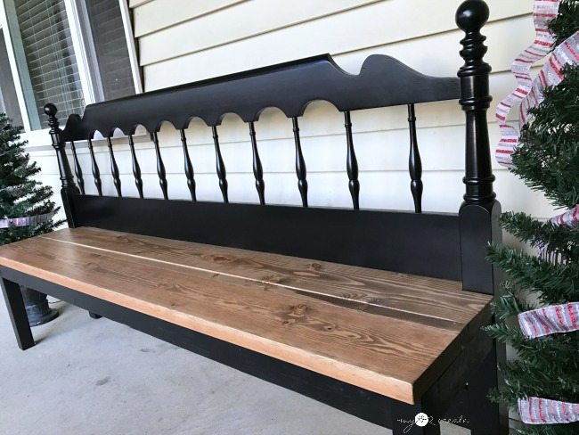 Did you know that you can apply gel stain over existing finishes to help them blend better with new lumber when you do repurposed furniture projects? This quick video will show you how I achieved the final result for this fabulous headboard bench.