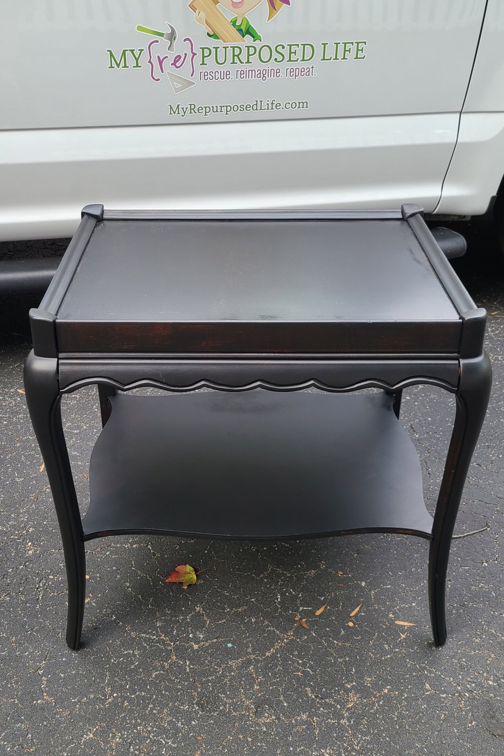 This is after the first (light) coat of Iron Gate from HTP. I’m in love with this color. It’s the perfect shade and sheen of black paint. Bonus! No waxing is needed!