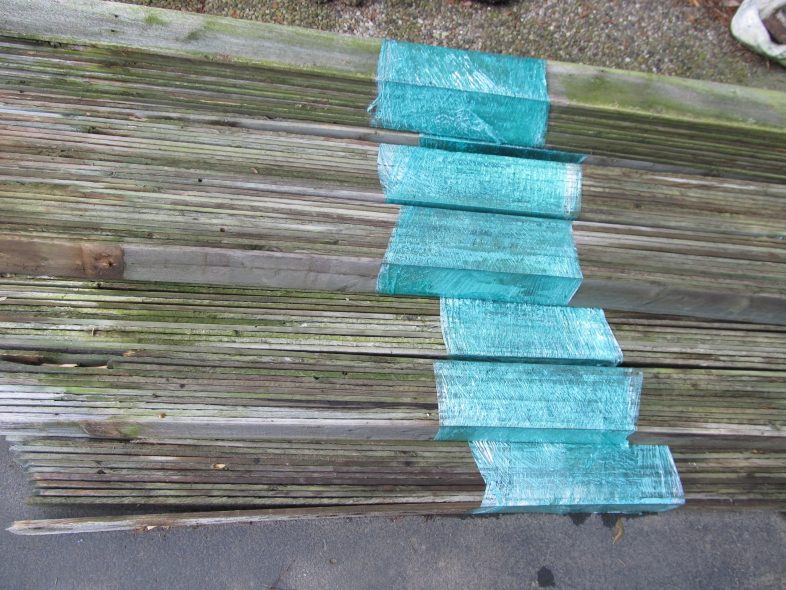 I gathered more boards and cut them to size. I didn’t have to rip any of the boards; they were the perfect size to leave a small gap between them.