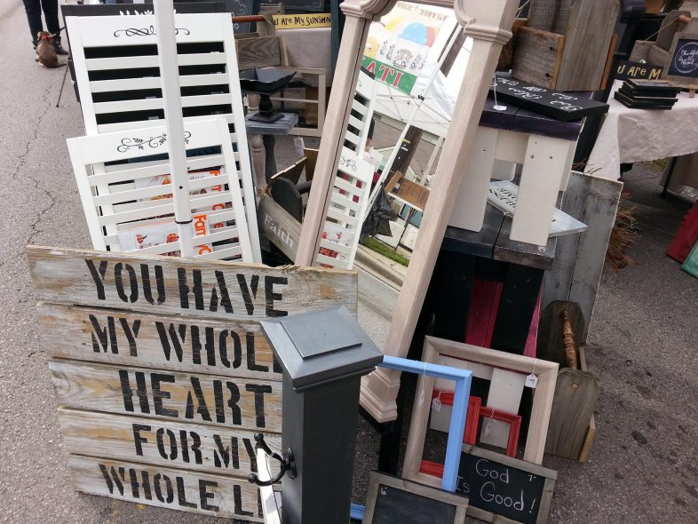After painting the frames, I took some of them to Making Merry in Berry Hill. The frame I used for this project is the large, weathered white one, located near the red one.